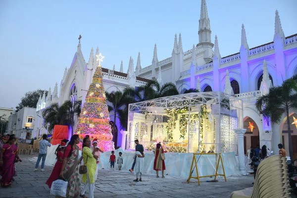 क्रिसमस के अवसर पर चेन्नई में चर्च की सजावट का दृश्य। फोटो— हरिहर कृष्णन