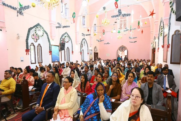 जयपुर के एक चर्च में प्रार्थना सभा में शामिल श्रद्धालु