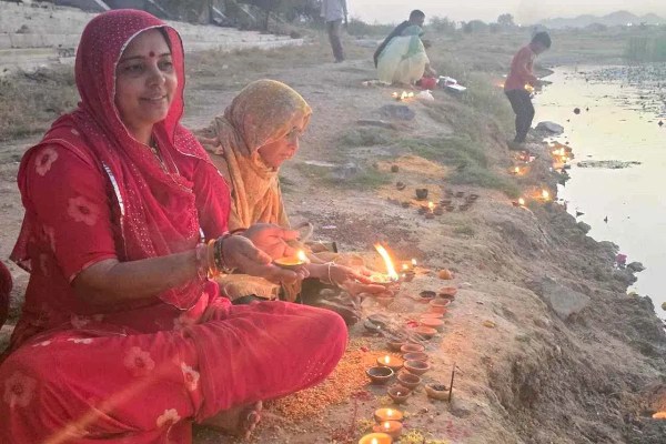 बाडमेर के जसदेर तालाब किनारे महिलाओं ने दीपक किए। धार्मिक पेड़ों के आगे भी महिलाओं ने दीपक करने के साथ हरजस किए।फोटो-ओम माली