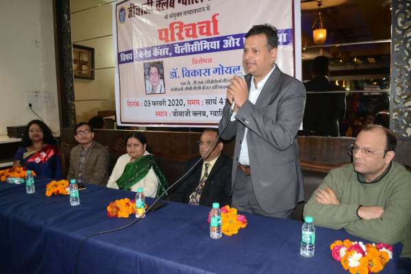 जीवाजी क्लब में आयोजित विश्व कैंसर दिवस के उपलक्ष में मातृशक्ति की ओर से मंगलवार को जीवाजी क्लब में एक परिचर्चा का आयोजन किया गया इस अवसर पर रायपुर से डॉक्टर विकास गोयल मौजूद रहे उन्होंने ब्लड कैंसर के इलाज और बचाव से परिचय कराया उन्होंने बताया कि ब्लड कैंसर के मरीजों में बोन मैरो ट्रांसप्लांट ही एकमात्र इलाज है जो अब पहले जितना जटिल नहीं रहा बोन मैरो डोनर स्पर्म डोनेट कर सकता है एक सवाल के जवाब में उन्होंने बताया थैलेसीमिया के बारे में बताया विवाह पूर्व जोड़ों की जन्म पत्री मिलाने की बजाए थैलेस
