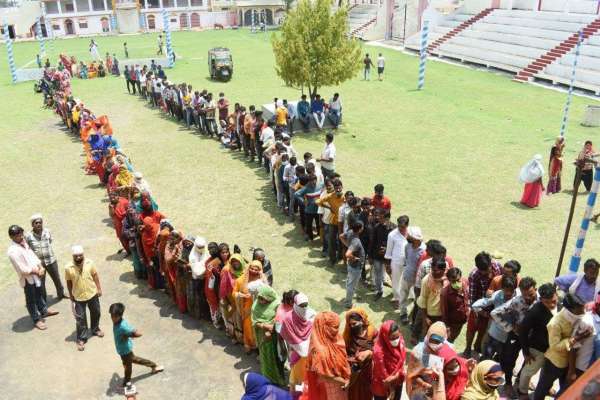 विदिशा में टीकाकरण केंद्र पर लगी भीड़। फोटो: जितेंद्र शर्मा