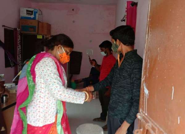 अपनों को बचाने बांध रहीं ' रक्षा सूत्र ' घर-घर दे रहे ' पीले चावल '