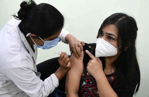 भोपाल के हमीदिया अस्पताल के वेक्सिनेशन सेंटरो पर डॉक्टरों ने लगवाए टीके । फ़ोटो : अजय शर्मा