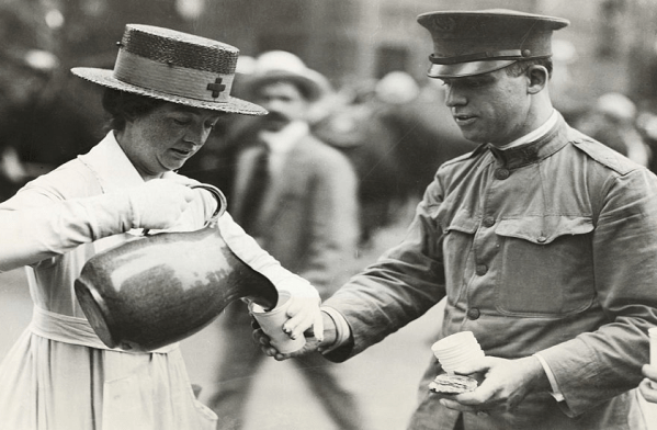 रेड क्रॉस के तहत युद्ध में सैनिकों की मदद करती महिला