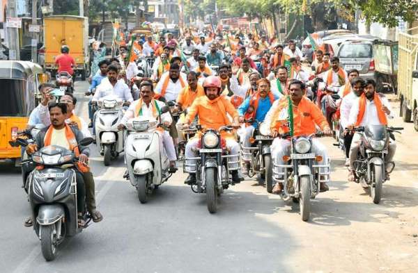 बाइक रैली के बाद केंद्रीय पर्यटन और संस्कृति मंत्री एवं तेलंगाना भाजपा अध्यक्ष जी किशन रेड्डी ने चुनावी सभा को भी संबोधित किया।