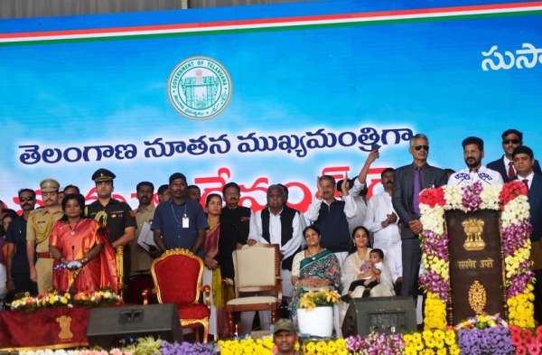 रेवंत रेड्डी ने गुरुवार को हैदराबाद के लाल बहादुर शास्त्री स्टेडियम में तेलंगाना के पहले कांग्रेसी मुख्यमंत्री के रूप में शपथ ली।