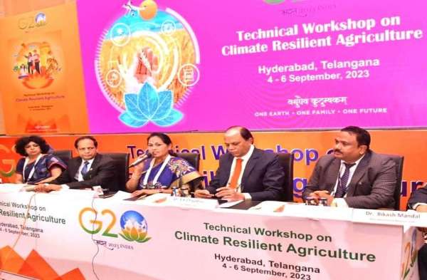 हैदराबाद में सोमवार को जलवायु-लोचदार कृषि पर तीन दिवसीय जी-20 तकनीकी कार्यशाला का आयोजन हुआ। इसमें केंद्रीय कृषि एवं किसान कल्याण राज्य मंत्री शोभा करंदलाजे ने वैज्ञानिकों, शोधकर्ताओं, विशेषज्ञों, शिक्षाविदों, नीति निर्माताओं और हितधारकों से जलवायु-लोचदार कृषि को आगे बढ़ाने के लिए सहयोग देने का आग्रह किया। उन्होंने जलवायु परिवर्तन से उत्पन्न वैश्विक चुनौतियों पर प्रकाश डाला। उन्होंने कहा कि जलवायु परिवर्तन पर अंतर-सरकारी पैनल (आईपीसीसी) की 2022 की छठी आकलन रिपोर्ट प्रकृति, जीवन और अवसंरचना पर जलवायु परिवर्तन के दूरगामी प्रभावों पर बल देती है, जिसके प्रतिकूल प्रभाव दुनिया भर में तेजी से स्पष्ट होते हैं और सतत विकास में बाधा डालते हैं।