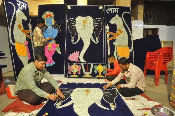 सिलावटपूरा स्थित गणेश मंदिर में गणेश उत्सव के लिए मोती महल का निर्माण किया जा रहा हे