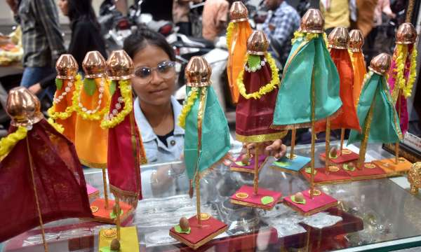 गुडीपडवा की तैयारी गुडी खरीदती महिलाएं