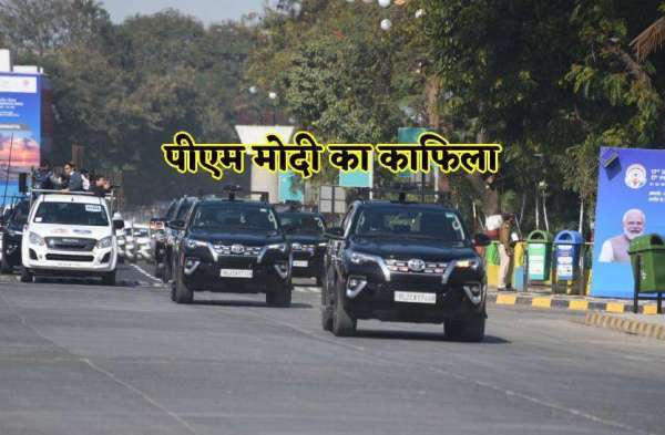 प्रधानमंत्री नरेंद्र मोदी का काफिला।