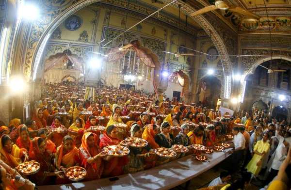 रामनवमी पर शहर के राम मंदिरों में भगवान राम के जन्माभिषेक के समय ऐसा ही नजारा देखने को मिला।
