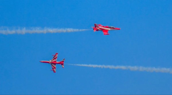 सूर्यकीरण के फाइटर प्लेन बेहद करीब से गुजरते। फोटो अनुग्रह सोलोमन।