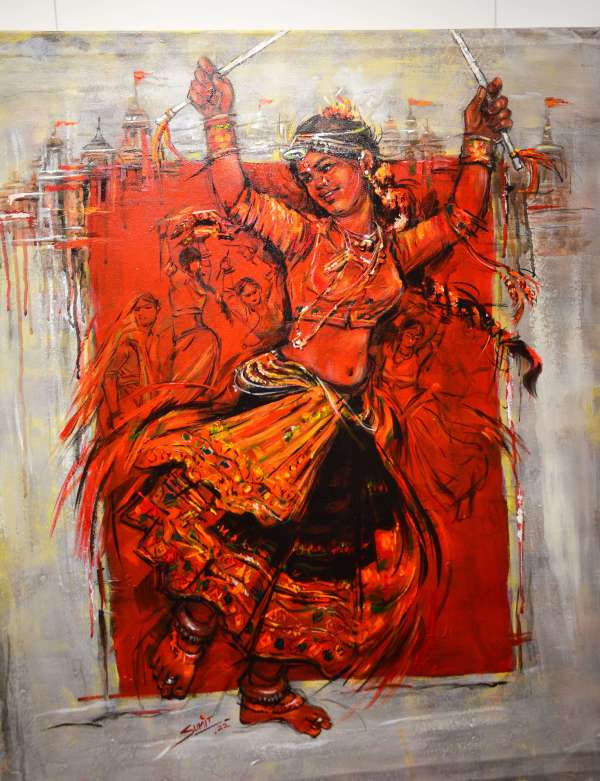 देश के जाने-माने आर्टिस्ट सुब्रता गंगोपाध्याय ने अपनी रचना में खूबसूरती से नाचती कृष्णप्रियायों को चटकीले रंगों के साथ कैनवास पर जीवित किया