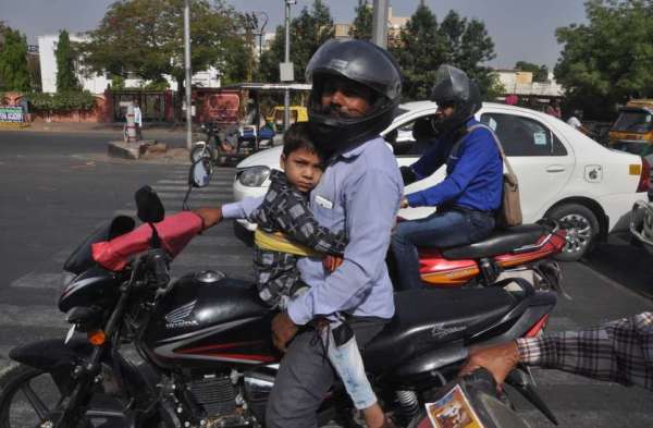 जयपुर में बीमार बच्चे को डॉक्टर को दिखाने के बाद घर जाते समय बच्चे को नींद भी आ जाये तो पिता ने यूँ की बच्चे की सुरक्षा।