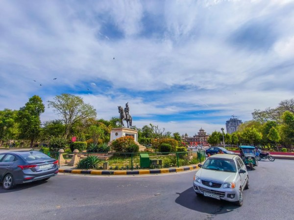 अल्बर्ट हाल के सामने लगी सवाई मानसिंह की मूर्ति पर छाए बादल। फोटो अनुग्रह सोलोमन।