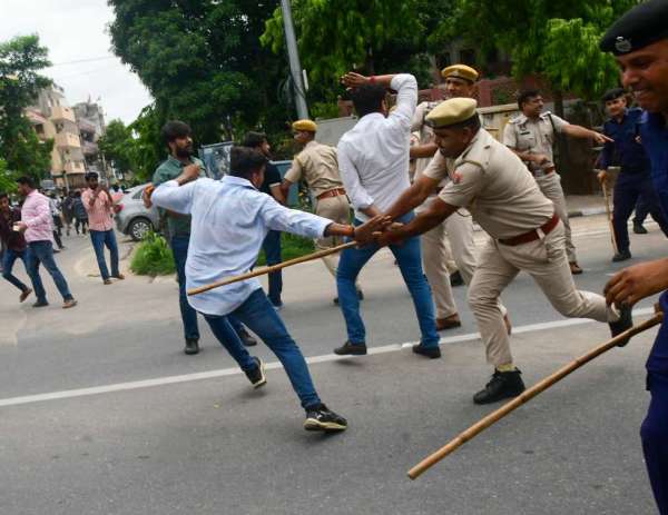 लाठी चार्ज करती पुलिस। फोटो अनुग्रह सोलोमन।
