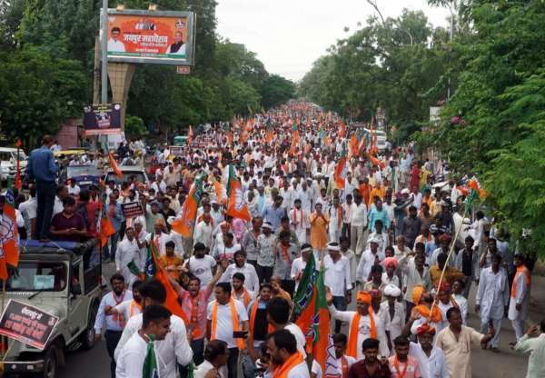 भाजपा कार्यालय से सचिवालय को कूच करते भाजपा के कार्यकर्ताओ के भीड़। लगभग पूरी ही रोड लोगो से भर गई थी। फोटो अनुग्रह सोलोमन।