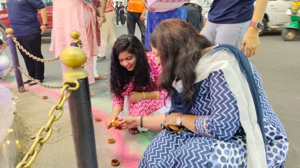 इस मौके पर पांचबत्ती पर युवतियों ने दीप जला कर दिवाली की खुशियां मनाई।