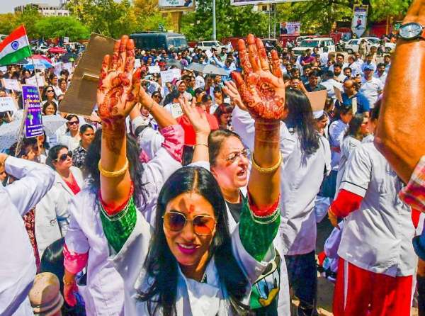 राइट टू हेल्थ के विरोध में डॉक्टरों ने निकाली रैली, किया कैंडल मार्च