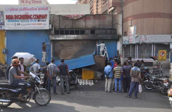 जयपुर के संसार चंद्र रोड पर आज सुबह पांच बजे वाइन शॉप में लगी आग।