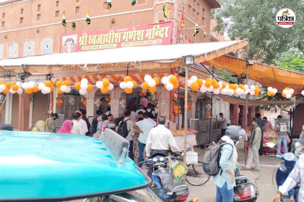 Ganesh Chaturthi : गणेश चतुर्थी पर मोती डूंगरी मंदिर में भगवान गणेश के दर्शन के लिए लाइन लगाए श्रद्धालु।