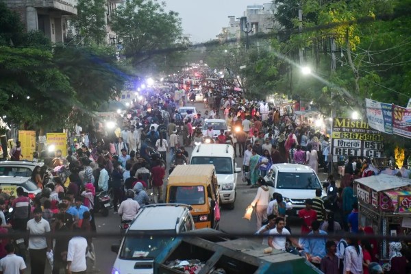 गाड़ियों से ज्यादा सड़क पर पैदल चलने वालों की भीड़ रहती है। फोटो अनुग्रह सोलोमन।