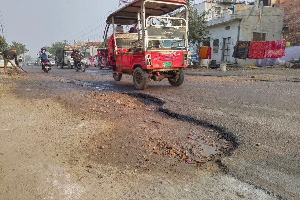 जवाहर नगर टीला नंबर दो के पास करीब 2.5 किमी लंबाई की ये सड़क जगह-जगह से टूट रही है। इसमें जगह-जगह गड्ढे हो रहे हैं।