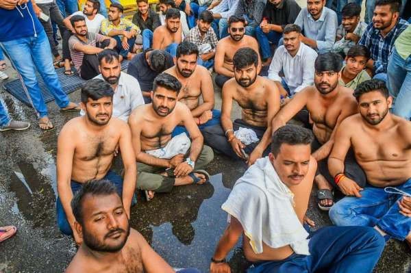 यूनिवर्सिटी का मुख्य द्वार बंद कर छात्र नेताओं अर्धनग्न प्रदर्शन किया। फोटो अनुग्रह सोलोमन।