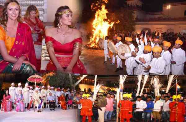 होली की शाम को राजधानी जयपुर में जगह-जगह लोगों ने अपने मोहल्लों में होलिका दहन परंपरापूर्वक किया। जयपुर के पूर्व राजपरिवार ने भी पारंपरिक तरीके से होलिका दहन किया। होलिका दहन का मुख्य कार्यक्रम सिटी पैलेस में हुआ। यहां सबसे पहले होली जली बाद में पूरे शहर में पहुंची। होली का दहन समारोह में पूर्व राज परिवार के सभी सदस्य शामिल हुए। अबीर गुलाल से सजी होलिका के दहन के बाद लोगों ने फेरी लगा कर ईश्वर से मनोकामनाएं मांगी। आइए देखते हैं जयपुर के सिटी पैलेस के शाही अंदाज में होलिका दहन के नजारे... (सभी फोटो - दिनेश डाबी)
