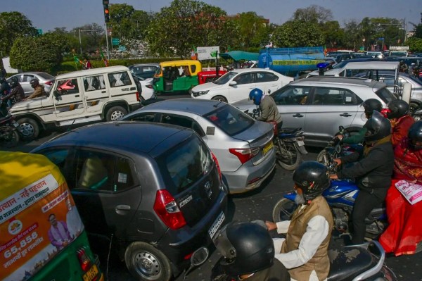 अम्बेडकर सर्किल पर लगा जाम। लोग होते रहे परेशान। फोटो अनुग्रह सोलोमन।