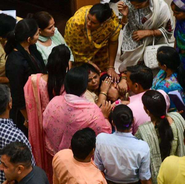 निर्दलीय पार्षद स्वाति परनामी की भाजपा के पार्षद से तीखी नोंकझोंक के बाद धरने पर बैठी। फोटो अनुग्रह सोलोमन