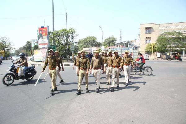 नारायण सिंह सर्किल पर पुलिस कार्यवाही करने जाते। फोटो अनुग्रह सोलोमन।