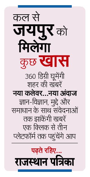 क्या आपकी खबर पूरे जयपुर को पढ़ाना चाहते हैं?तो देखिए कल का राजस्थान पत्रिका