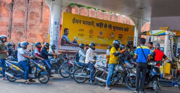 अजमेरी गेट के पेट्रोल पंप पर लगी भीड़। फोटो अनुग्रह सोलोमन।