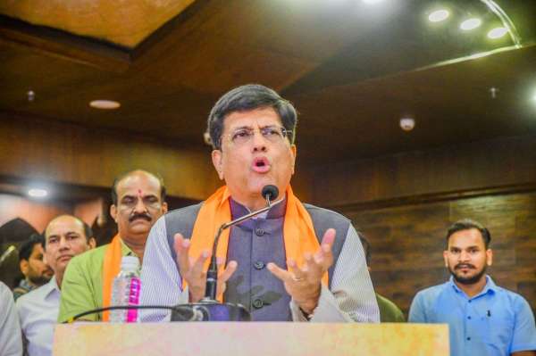पीयूष गोयल मीडिया से बात करते। फोटो अनुग्रह सोलोमन