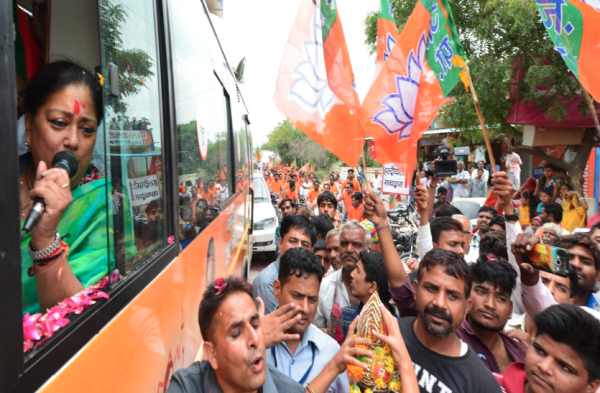 - राजे ने उपली ओडन गांव में रथ के ऊपर आकर 2 मिनिट लोगो को संबोधित किया गुलाब चंद कटारिया आज राजे के साथ रथ में सवार हुए