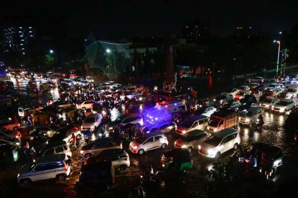 त्रिमूर्ति सर्किल पर लगा जाम। फोटो अनुग्रह सोलोमन।