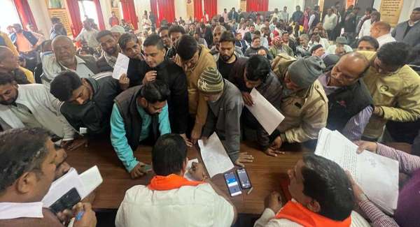 बगैर सिक्योरिटी के मंत्री संजय शर्मा फरियादियों से किस तरह घिरे रहते हैं, उसकी बानगी रविवार को जयपुर में देखने को मिली। जब सैंकड़ों की संख्या में फरियादी मंत्री को अपनी फ़रियाद सुनाने पहुंचे।