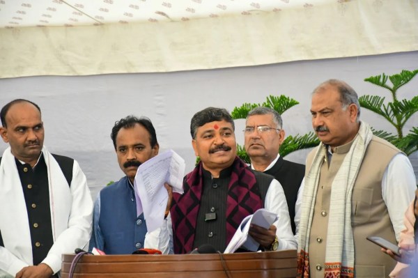 गृह राज्य मंत्री जवाहर सिंह बैडम और नेता प्रतिपक्ष टीकाराम जूली और कांग्रेसी विधायक रफीक खान की ट्रेड डील को लेकर हल्की मजाकिया नोक झोंक हुई। फोटो अनुग्रह सोलोमन।