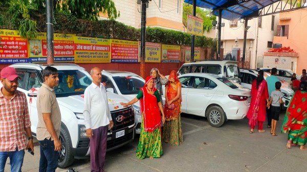 नए वाहन खरीदकर श्रद्धालु पूजा कराने के लिए मंदिर पहुंचे। मंदिर के बाहर नए वाहनों की कतारें नजर आईं।