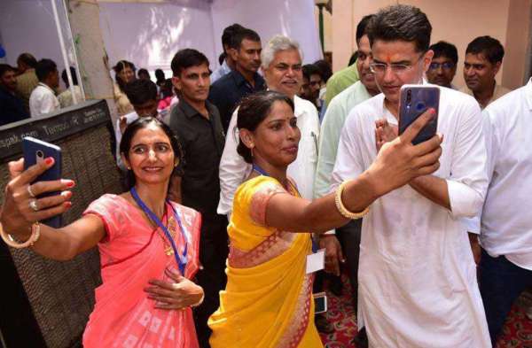 सचिन पायलट के साथ महिलायें सेल्फी लेते हुए ...