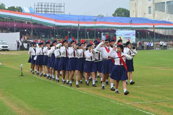 स्वतंत्रता दिवस पर राज्य स्तरीय समारोह में बैंड वादन करती स्कूली छात्राएं।