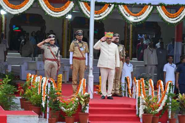 राज्य स्तरीय समारोह में ध्वजारोहण के बाद सीएम भजनलाल शर्मा ने परेड की सलामी ली।