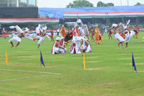 स्वतंत्रता दिवस के राज्य स्तरीय कार्यक्रम में सांस्कृतिक प्रस्तुति देते कलाकार।
