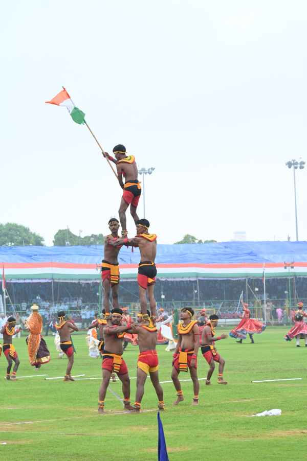 स्वतंत्रता दिवस समारोह में शारीरिक प्रदर्शन करते युवा।