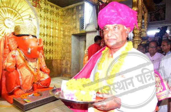 भाजपा के नए प्रदेशाध्यक्ष मदनलाल सैनी ने गणेश जी को चढाए मोदक। फोटो: रघुवीर सिंह