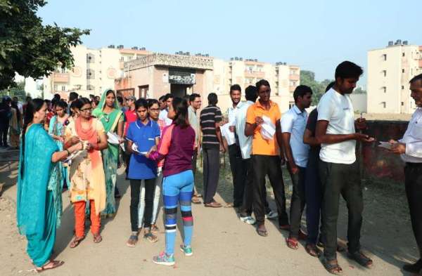शिक्षक भर्ती परीक्षा में महिलाओ को अभी भी नियमो के कारन करना पड रहा है दिक्क्तों का सामना वरिष्ठ अद्यापक शिक्षा में लगी लम्बी लाइन कर रहे चेकिंग का भारी सामना