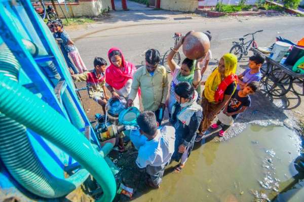 टैंकर से पानी भरते। फोटो अनुग्रह सोलोमन