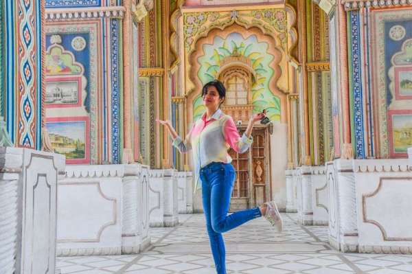 मुख्य बिल्डिंग पर भी दिव्या ने स्पेशल पोज दिया। फोटो अनुग्रह सोलोमन।