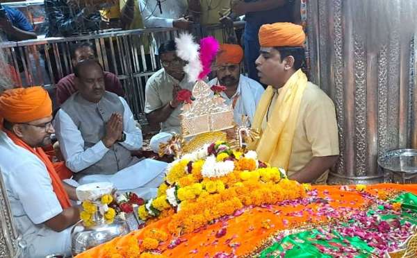 रामदेवरा में बाबा रामदेव की समाधि के दर्शन करते लोकसभा अध्यक्ष ओम बिरला।